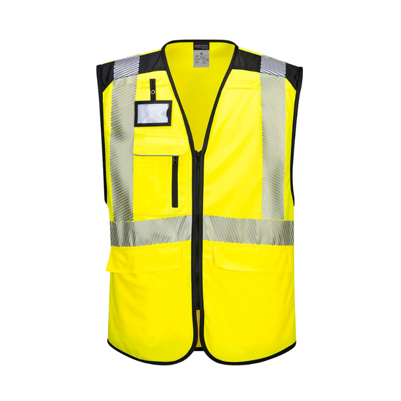 Die PW3 Exekutiv-Weste hat ein stilvolles Design und kombiniert die Premium-Eigenschaften unserer PW3-Reihe, einschließlich HiVisTex Pro-Band, mit der Praktikabilität von Taschen für die Situationen, in denen eine Jacke zu warm sein könnte. Eine durchsichtige, abnehmbare Ausweistasche für Sicherheitsausweise und Karten vervollständigt dieses einzigartige Kleidungsstück.